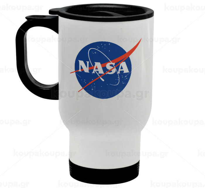 Nasa, Κούπα ταξιδιού ανοξείδωτη με καπάκι, διπλού τοιχώματος (θερμό) λευκή 450ml