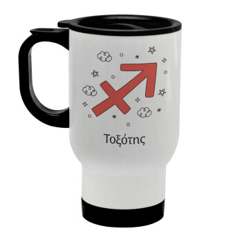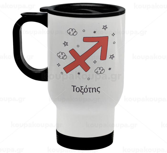 Ζώδια Τοξότης, Κούπα ταξιδιού ανοξείδωτη με καπάκι, διπλού τοιχώματος (θερμό) λευκή 450ml