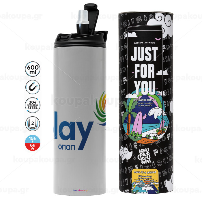 Play by ΟΠΑΠ, Tumbler ποτήρι θερμό ΓΚΡΙ από ανοξείδωτο ατσάλι 600ml