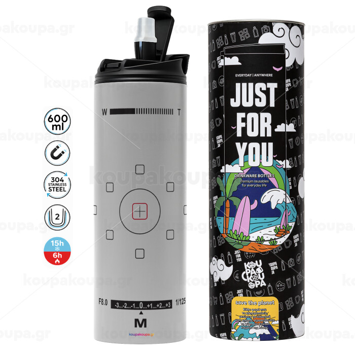 Camera viewfinder, Tumbler ποτήρι θερμό ΓΚΡΙ από ανοξείδωτο ατσάλι 600ml