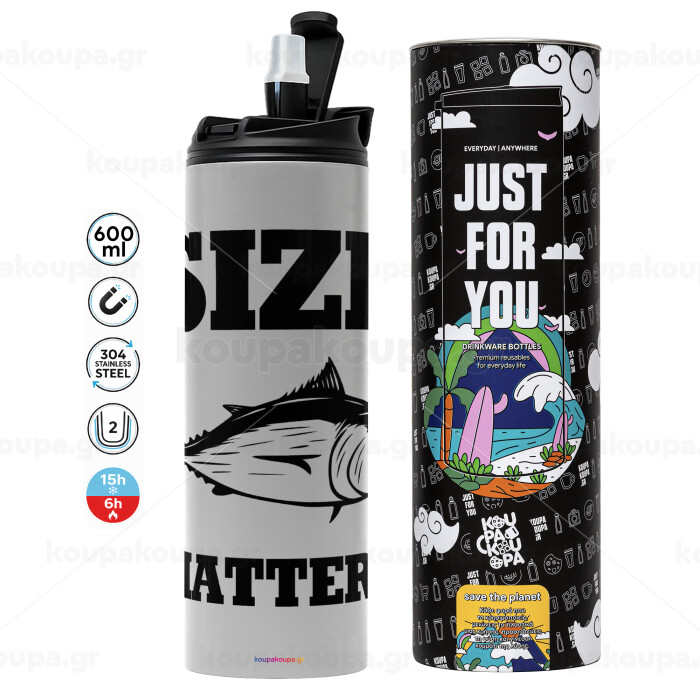 Size matters, Tumbler ποτήρι θερμό ΓΚΡΙ από ανοξείδωτο ατσάλι 600ml