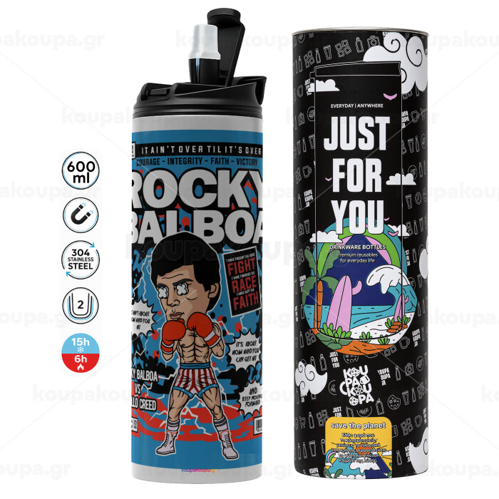 Rocky Balboa, Tumbler ποτήρι θερμό ΓΚΡΙ από ανοξείδωτο ατσάλι 600ml