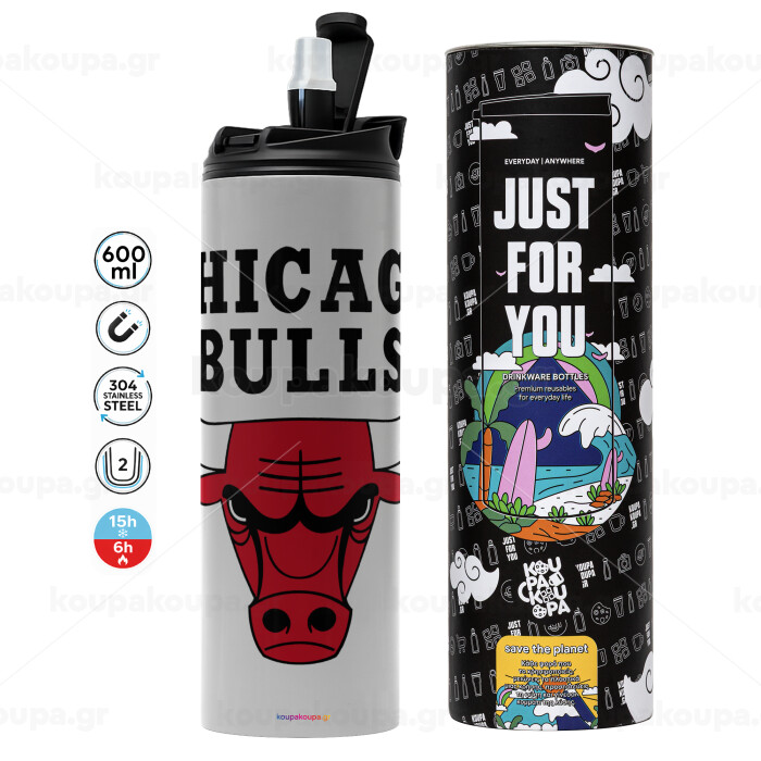 Chicago Bulls, Tumbler ποτήρι θερμό ΓΚΡΙ από ανοξείδωτο ατσάλι 600ml