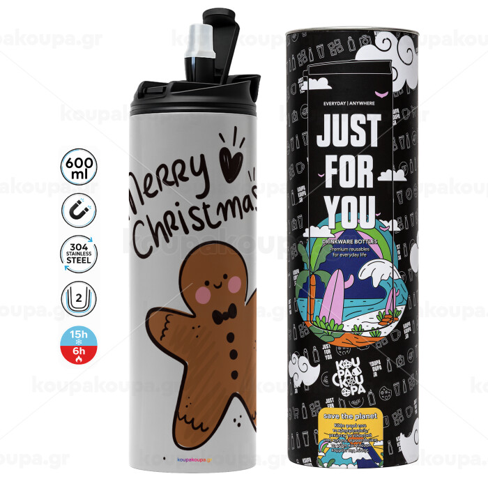 mr gingerbread, Tumbler ποτήρι θερμό ΓΚΡΙ από ανοξείδωτο ατσάλι 600ml