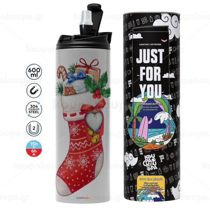 Xmas boot, Tumbler ποτήρι θερμό ΓΚΡΙ από ανοξείδωτο ατσάλι 600ml