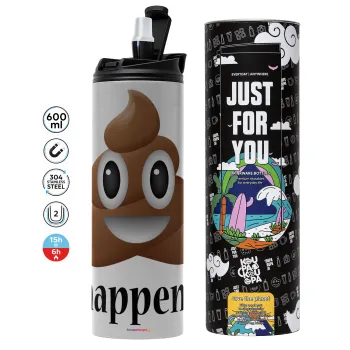 Shit Happens, Tumbler ποτήρι θερμό ΓΚΡΙ από ανοξείδωτο ατσάλι 600ml