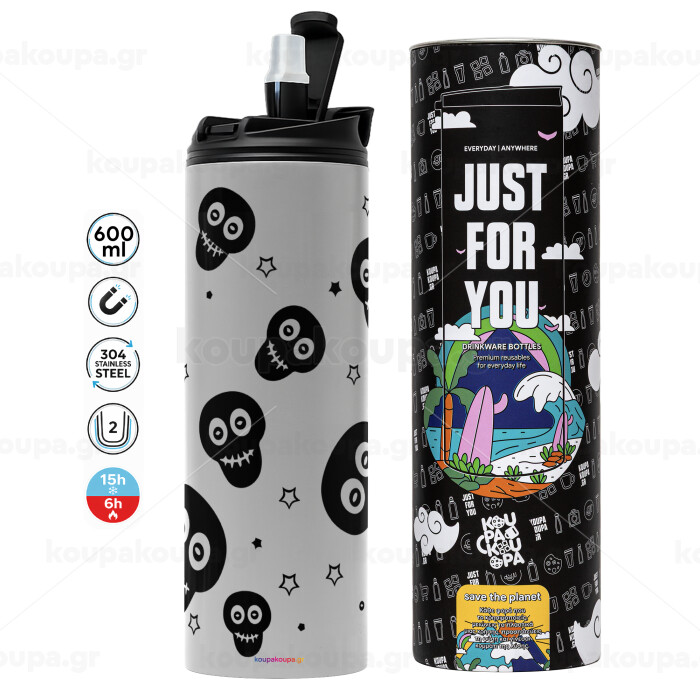 Skull avatar, Tumbler ποτήρι θερμό ΓΚΡΙ από ανοξείδωτο ατσάλι 600ml
