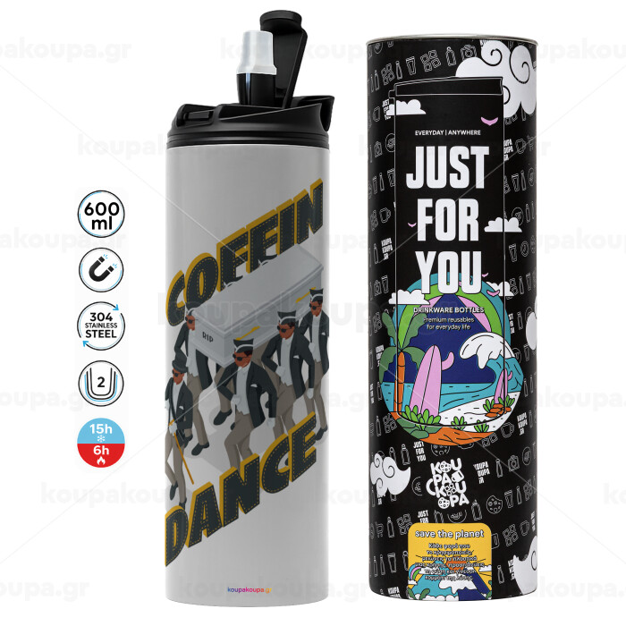 Coffin Dance!, Tumbler ποτήρι θερμό ΓΚΡΙ από ανοξείδωτο ατσάλι 600ml