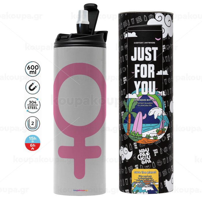 FEMALE, Tumbler ποτήρι θερμό ΓΚΡΙ από ανοξείδωτο ατσάλι 600ml