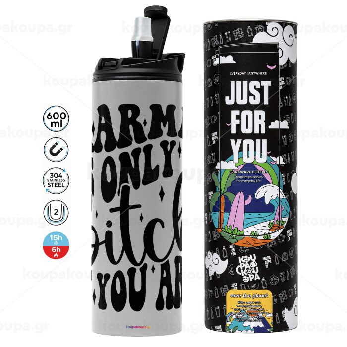 Karma is Only A Bitch if You Are, Tumbler ποτήρι θερμό ΓΚΡΙ από ανοξείδωτο ατσάλι 600ml