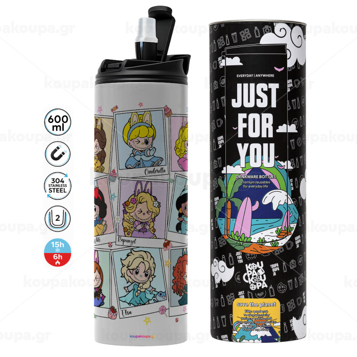 Labubu characters, Tumbler ποτήρι θερμό ΓΚΡΙ από ανοξείδωτο ατσάλι 600ml