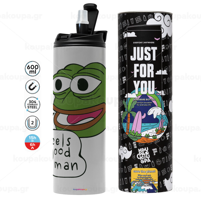Pepe the frog, Tumbler ποτήρι θερμό ΓΚΡΙ από ανοξείδωτο ατσάλι 600ml
