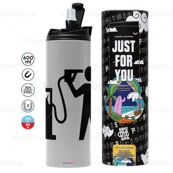 Fuel crisis, Tumbler ποτήρι θερμό ΓΚΡΙ από ανοξείδωτο ατσάλι 600ml