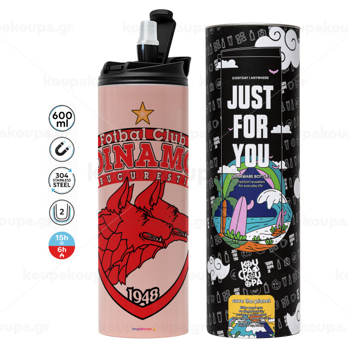 FC Dinamo Bucuresti, Tumbler ποτήρι θερμό ΡΟΖ από ανοξείδωτο ατσάλι 600ml