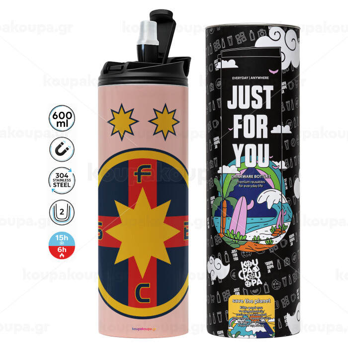 FC Steaua Bucuresti (FCSB), Tumbler ποτήρι θερμό ΡΟΖ από ανοξείδωτο ατσάλι 600ml