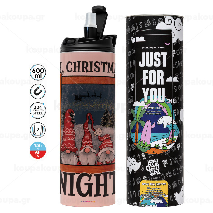 Oh Christmas Night, Tumbler ποτήρι θερμό ΡΟΖ από ανοξείδωτο ατσάλι 600ml