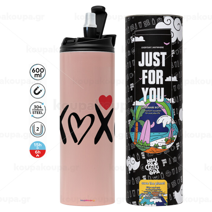 xoxo, Tumbler ποτήρι θερμό ΡΟΖ από ανοξείδωτο ατσάλι 600ml
