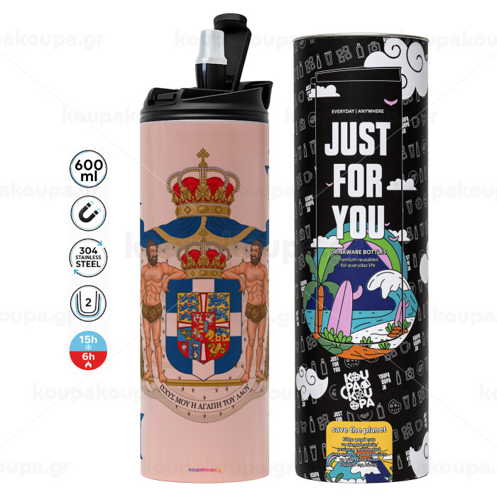 Βασίλειον της Ελλάδος, Tumbler ποτήρι θερμό ΡΟΖ από ανοξείδωτο ατσάλι 600ml