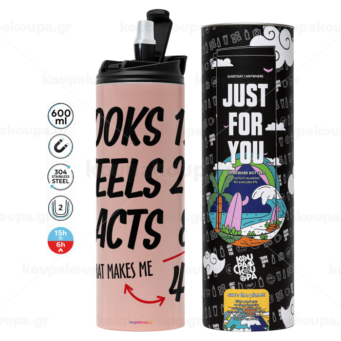 Looks, feels, acts LIKE your AGE, Tumbler ποτήρι θερμό ΡΟΖ από ανοξείδωτο ατσάλι 600ml