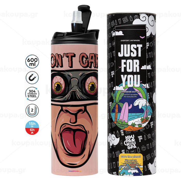 Don't Care, Tumbler ποτήρι θερμό ΡΟΖ από ανοξείδωτο ατσάλι 600ml