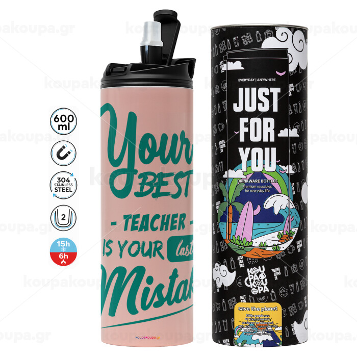 Your best teacher is your last mistake, Tumbler ποτήρι θερμό ΡΟΖ από ανοξείδωτο ατσάλι 600ml