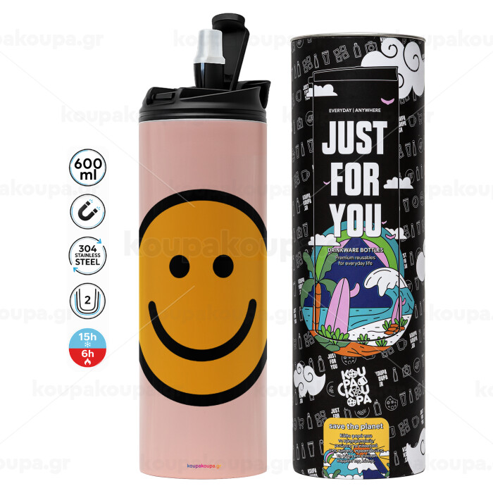 Smile classic, Tumbler ποτήρι θερμό ΡΟΖ από ανοξείδωτο ατσάλι 600ml