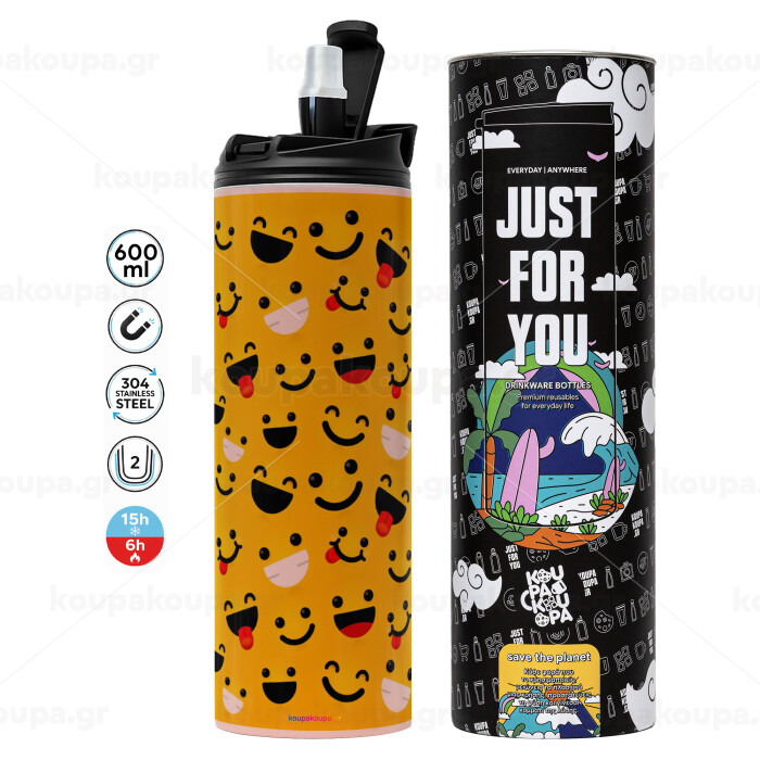 Smilies , Tumbler ποτήρι θερμό ΡΟΖ από ανοξείδωτο ατσάλι 600ml