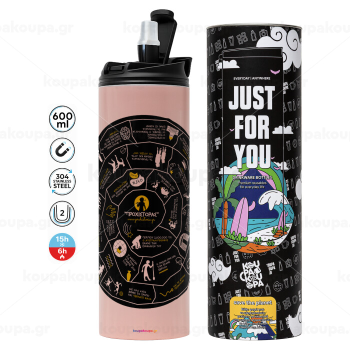Προχίστορας, Tumbler ποτήρι θερμό ΡΟΖ από ανοξείδωτο ατσάλι 600ml