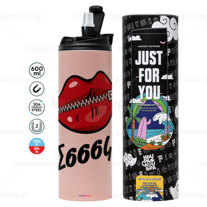 Σσσσς..., Tumbler ποτήρι θερμό ΡΟΖ από ανοξείδωτο ατσάλι 600ml