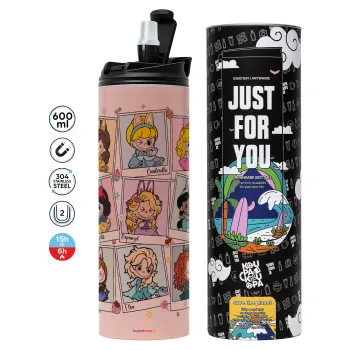Labubu characters, Tumbler ποτήρι θερμό ΡΟΖ από ανοξείδωτο ατσάλι 600ml