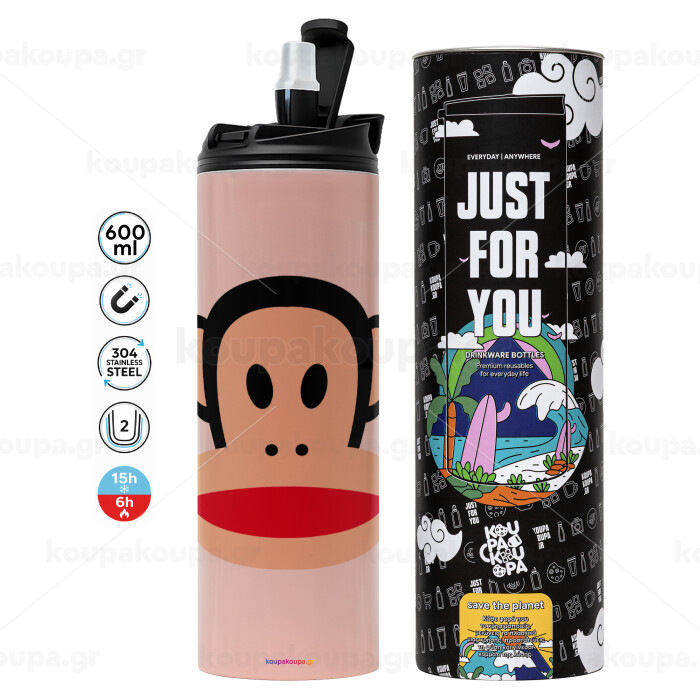 Monkey, Tumbler ποτήρι θερμό ΡΟΖ από ανοξείδωτο ατσάλι 600ml
