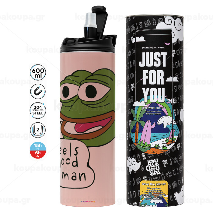 Pepe the frog, Tumbler ποτήρι θερμό ΡΟΖ από ανοξείδωτο ατσάλι 600ml