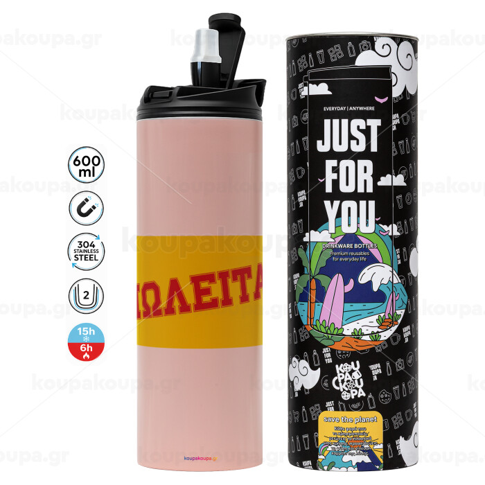 ΠΩΛΕΙΤΑΙ, Tumbler ποτήρι θερμό ΡΟΖ από ανοξείδωτο ατσάλι 600ml