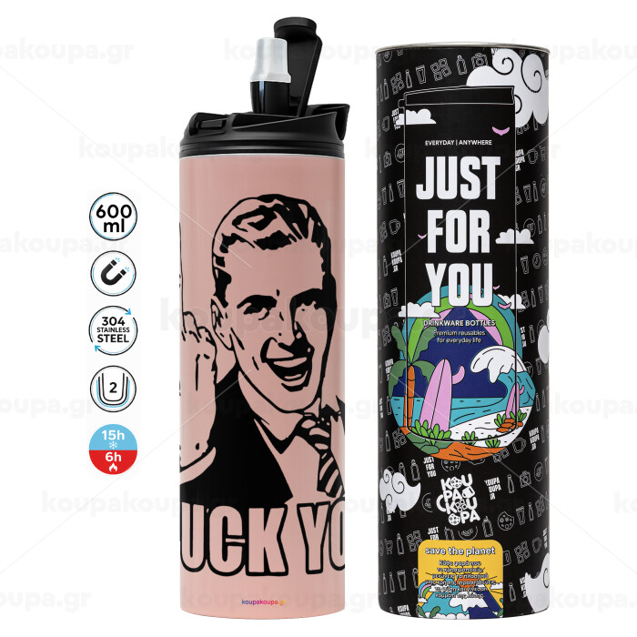The finger, Tumbler ποτήρι θερμό ΡΟΖ από ανοξείδωτο ατσάλι 600ml