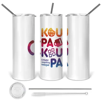 koupakoupa, Tumbler ποτήρι θερμό από ανοξείδωτο ατσάλι 600ml, με μεταλλικό καλαμάκι & βούρτσα καθαρισμού