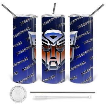 Transformers, Tumbler ποτήρι θερμό από ανοξείδωτο ατσάλι 600ml, με μεταλλικό καλαμάκι & βούρτσα καθαρισμού