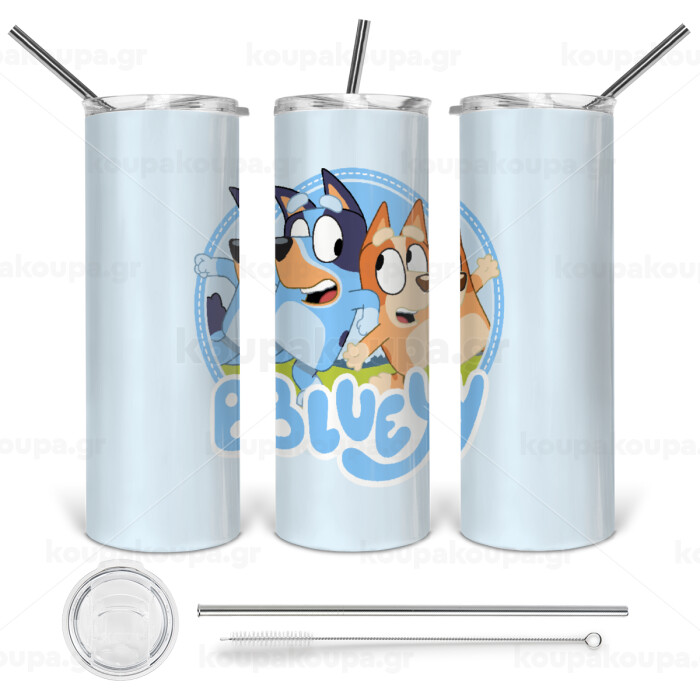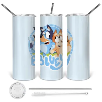 Μπλε, Tumbler ποτήρι θερμό από ανοξείδωτο ατσάλι 600ml, με μεταλλικό καλαμάκι & βούρτσα καθαρισμού