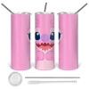 Lilo & Stitch Angel pink, Tumbler ποτήρι θερμό από ανοξείδωτο ατσάλι 600ml, με μεταλλικό καλαμάκι & βούρτσα καθαρισμού