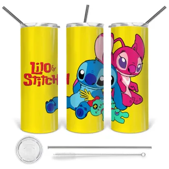 Lilo & Stitch, Tumbler ποτήρι θερμό από ανοξείδωτο ατσάλι 600ml, με μεταλλικό καλαμάκι & βούρτσα καθαρισμού