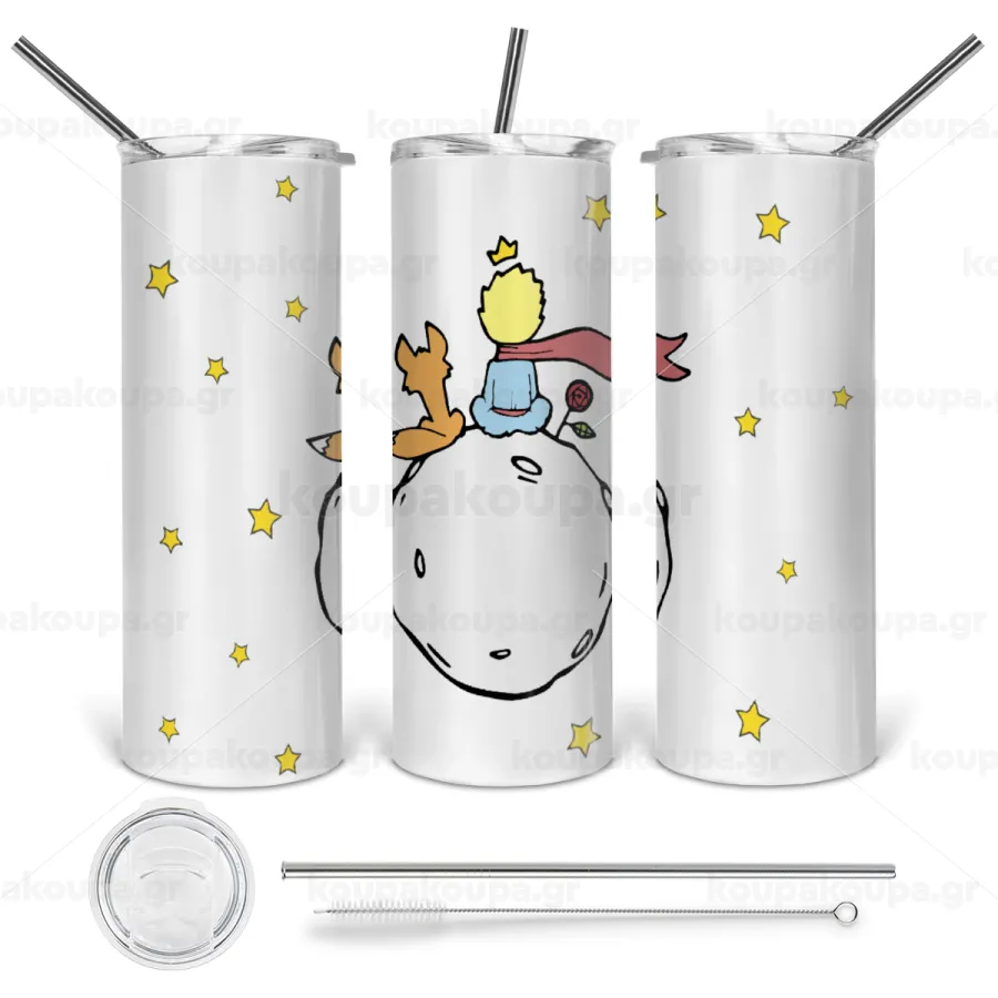 Little prince, Tumbler ποτήρι θερμό από ανοξείδωτο ατσάλι 600ml, με μεταλλικό καλαμάκι & βούρτσα καθαρισμού
