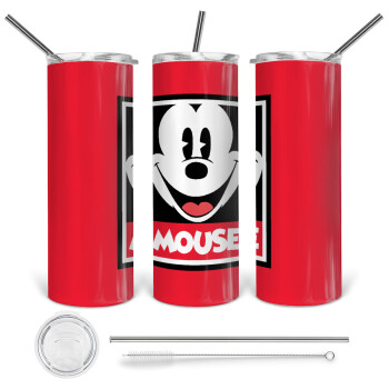 Μίκυ Μάους, Tumbler ποτήρι θερμό από ανοξείδωτο ατσάλι 600ml, με μεταλλικό καλαμάκι & βούρτσα καθαρισμού