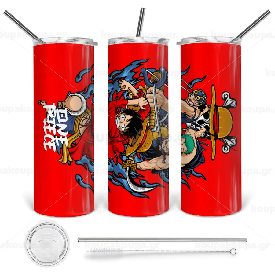 One Piece, Tumbler ποτήρι θερμό από ανοξείδωτο ατσάλι 600ml, με μεταλλικό καλαμάκι & βούρτσα καθαρισμού