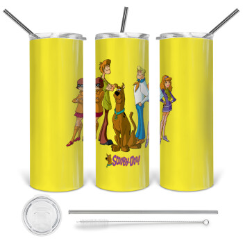Scooby Doo Characters, Tumbler ποτήρι θερμό από ανοξείδωτο ατσάλι 600ml, με μεταλλικό καλαμάκι & βούρτσα καθαρισμού