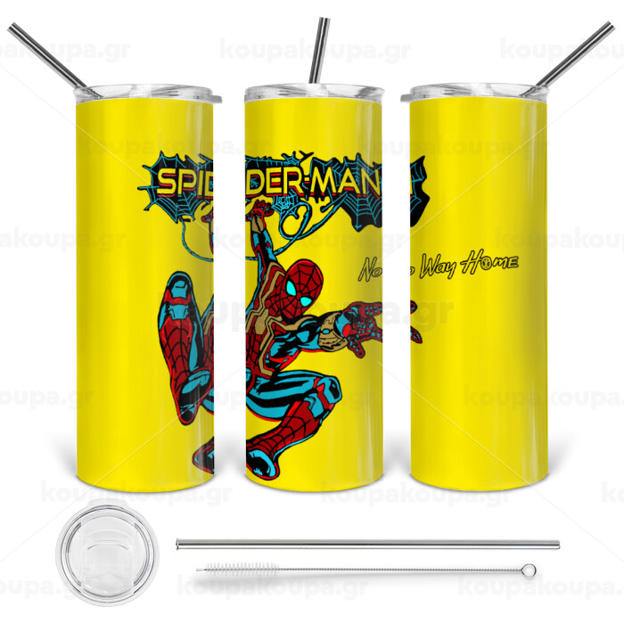 Spiderman no way home, Tumbler ποτήρι θερμό από ανοξείδωτο ατσάλι 600ml, με μεταλλικό καλαμάκι & βούρτσα καθαρισμού