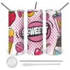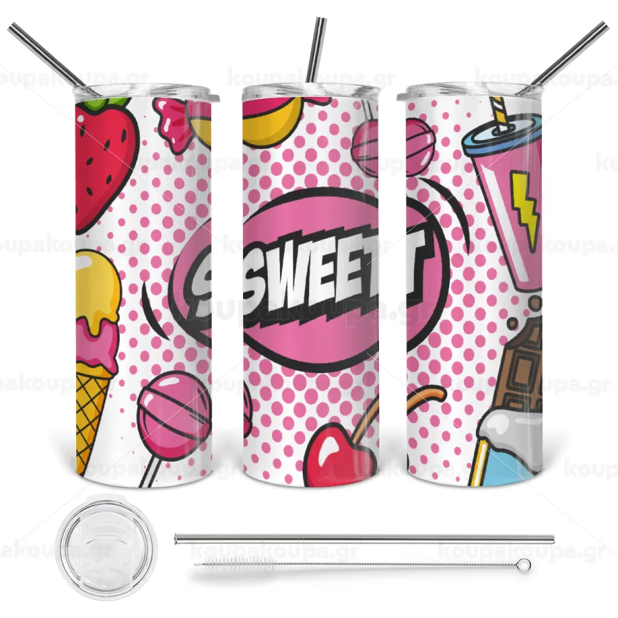 SWEET, Tumbler ποτήρι θερμό από ανοξείδωτο ατσάλι 600ml, με μεταλλικό καλαμάκι & βούρτσα καθαρισμού
