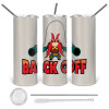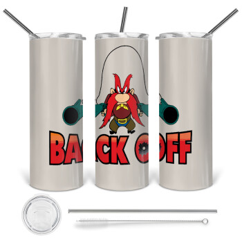 Yosemite Sam Back OFF, Tumbler ποτήρι θερμό από ανοξείδωτο ατσάλι 600ml, με μεταλλικό καλαμάκι & βούρτσα καθαρισμού