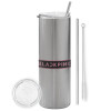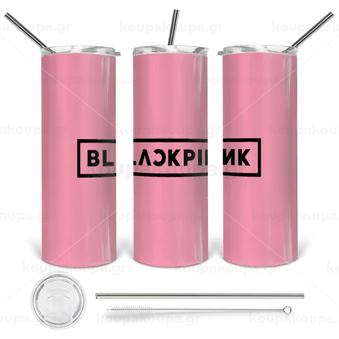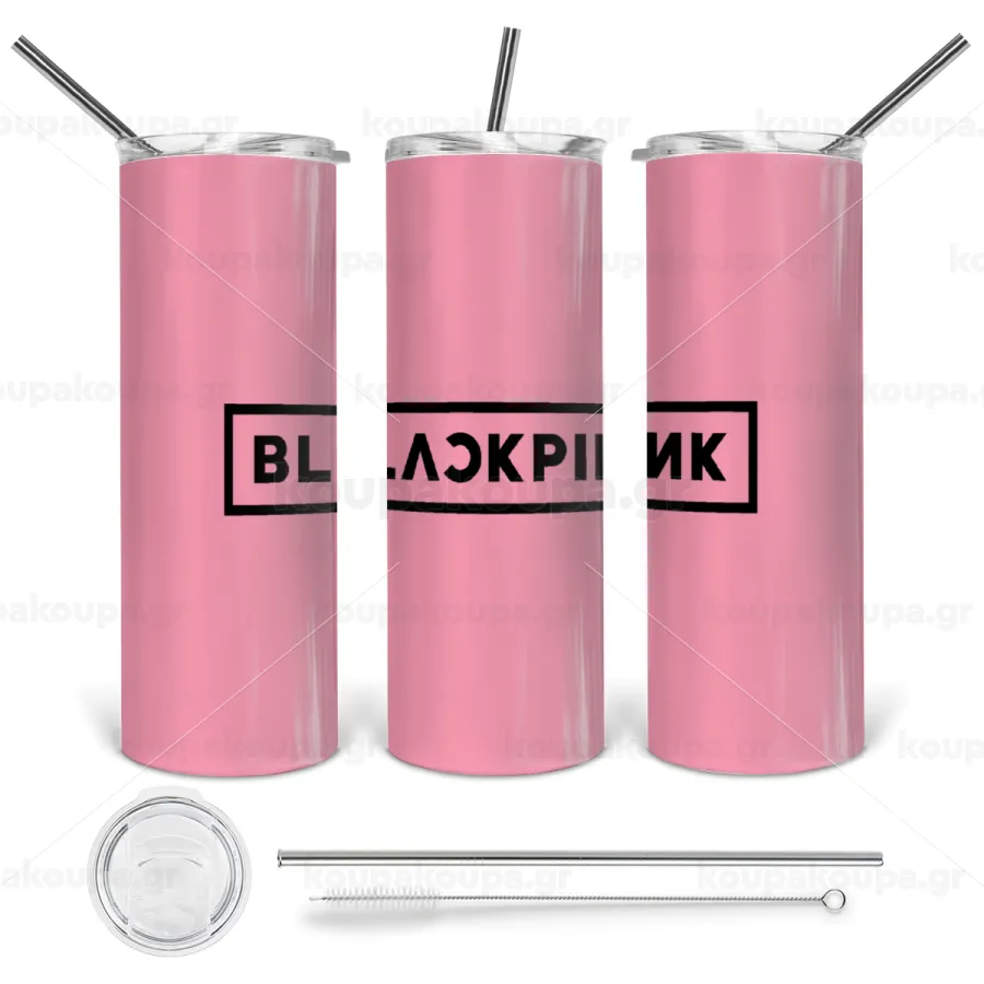 BLACKPINK, Tumbler ποτήρι θερμό από ανοξείδωτο ατσάλι 600ml, με μεταλλικό καλαμάκι & βούρτσα καθαρισμού