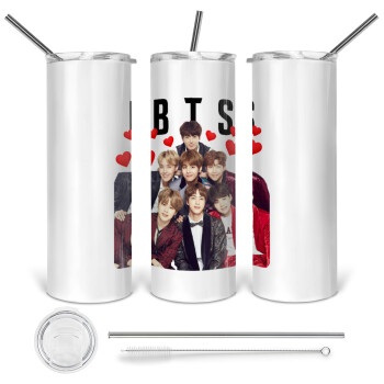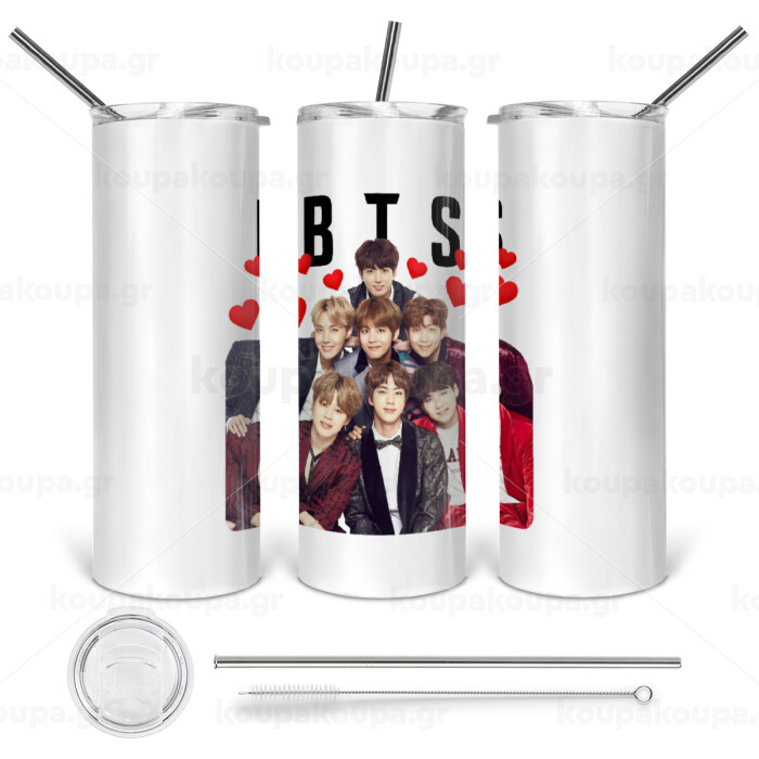 BTS hearts, Tumbler ποτήρι θερμό από ανοξείδωτο ατσάλι 600ml, με μεταλλικό καλαμάκι & βούρτσα καθαρισμού