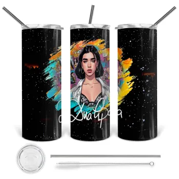 Dua lipa, Tumbler ποτήρι θερμό από ανοξείδωτο ατσάλι 600ml, με μεταλλικό καλαμάκι & βούρτσα καθαρισμού