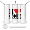 I Love, One Direction, Tumbler ποτήρι θερμό από ανοξείδωτο ατσάλι 600ml, με μεταλλικό καλαμάκι & βούρτσα καθαρισμού